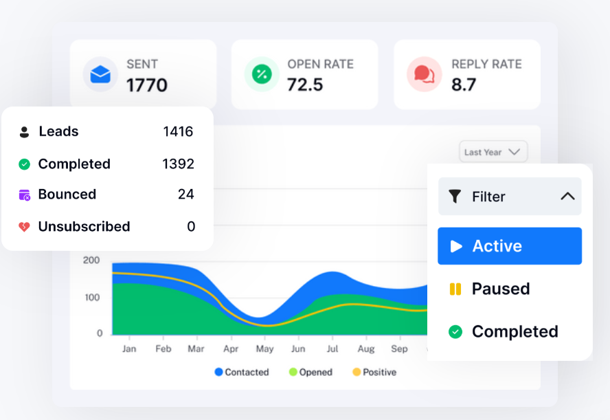 See exactly what’s working with our advanced analytics dashboard. Pause the campaigns that need work and scale the ones that are performing well.